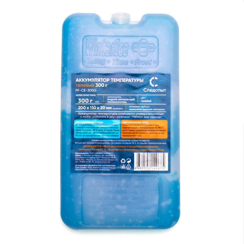 Гелевый аккумулятор холода «Следопыт» - отличное приобретение для летних семейных пикников и длительных путешествий на машине. Аккумулятор температуры отличается универсальностью и может работать в двух режимах: «тепло» или «холод». Положив этот аксессуар в термосумку, напитки и продукты сохранят нужную оптимальную для Вас температуру. Аккумулятор изготовлен из высококачественного пластика и является абсолютно безопасным, так как наполнен жидким нетоксичным тееплоносителем.