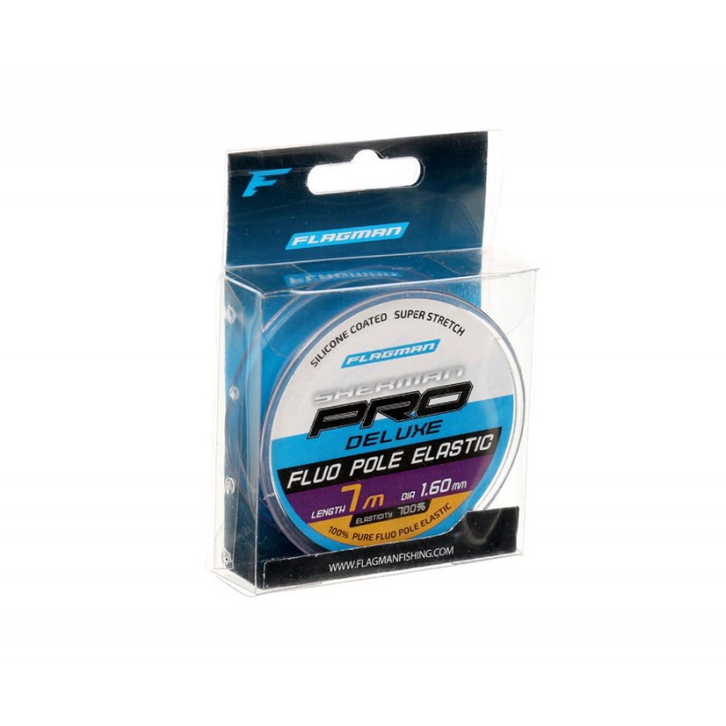 Flagman Deluxe Fluo Pole Elastic — высококачественный амортизатор для штекера, изготовленный из яркого флуоресцентного латекса. Благодаря гладкой поверхности и силиконовому покрытию резина прекрасно скользит внутри кита. Обладает очень высокой эластичностью — растяжимость составляет 700%. Представлен в диаметрах от 0,8 до 1,6 мм. Каждому диаметру соответствует свой цвет. Размотка — 7 м.
