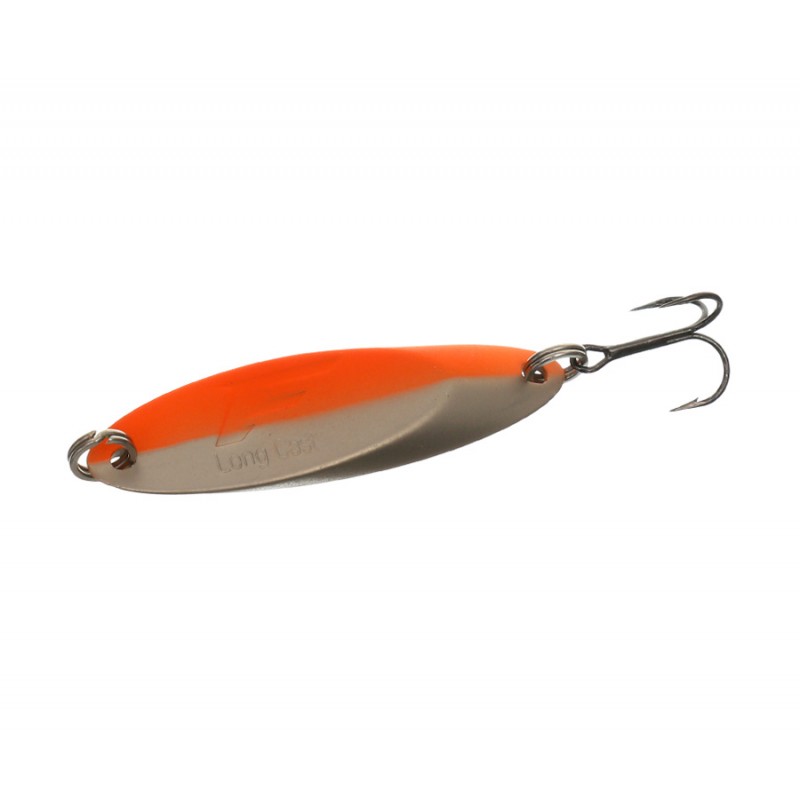 Long Cast — серия колеблющихся блесен типа «кастмастер». Блесна представляет собой цилиндрическую заготовку, на которой выполнен косой срез, а грани образуют острые углы с основанием. Однако у Long Cast есть одно существенно отличие в форме тела, которое меняет балансировку и соответственно улучшает игру блесны — срез цилиндра выполнен под углом. В результате блесна более живо имитирует трепыхания рыбки, тем самым привлекая даже самого осторожного хищника. Другое достоинство Long Cast — точный и сверхдальний заброс. Блесна изготовлена из твердого сплава, имеет высококачественное покрытие серебристого цвета или другого оттенка в зависимости от модели (красного, голубого, зеленого). Комплектуется острейшим тройником и фирменными кольцами VMS. Flagman Long Cast — отличный выбор для охоты на жереха, судака, крупного окуня и щуку. Впрочем, с этой блесной даже сом может стать вашей добычей.