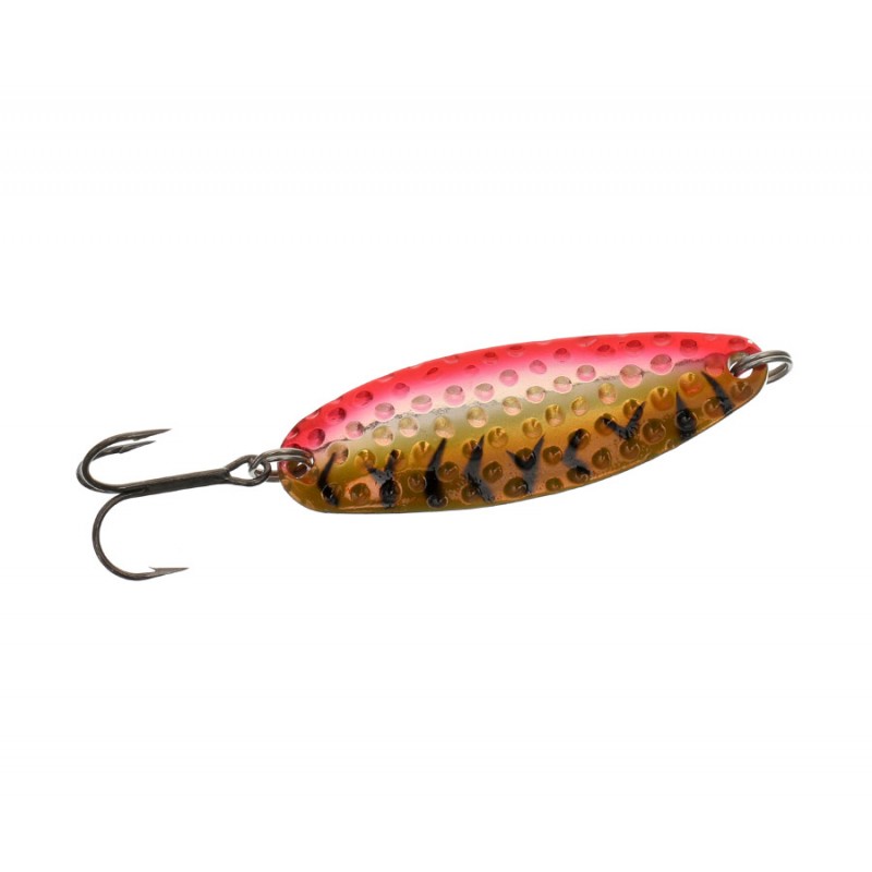 Колеблющаяся блесна Flagman Rotto обладает узким и овальным телом, благодаря чему она превосходно преодолевает дальние расстояния при забросах. Блестящая, в точечных выемках, поверхность приманки напоминает чешую, которая великолепно играет на свету и эффективно привлекает хищную рыбу. Flagman Rotto комплектуется острейшим тройником и фирменными кольцами VMS. Серия представлена золотой и серебристой моделями, а также сочетанием серебристого и золотого покрытия с красным, синим или зеленым цветами, что позволяет выбрать подходящую модель под конкретное место и условия лова. Опытные рыболовы отмечают, что Flagman Rotto наиболее уловиста при ступенчатой проводке в охоте на крупную щуку и судака.