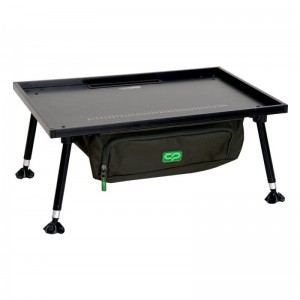 Монтажный стол Carp Pro Organizer Table – складной монтажный стол-органайзер, который предназначен для изготовления монтажей и оснасток во время рыбалки, подготовки снастей и размещения гаджетов. Края металлической столешницы оборудованы увеличенными бортиками, предотвращающими падение предметов со стола. Кроме того, столешница Carp Pro Organizer Table имеет слот для вертикальной или горизонтальной установки телефона и линейку от 0 до 35 см для измерения длины поводков. Четыре складные регулируемые по высоте ножки имеют телескопическую конструкцию и оснащены грязевыми пятами на шарнирах, что позволяет установить стол практически на любом рельефе берега и мягком грунте. Под столешницей размещена сумка из износостойкого материала 600D размером 38х36х12 см с молнией в передней части. В задней части сумки предусмотрено отверстие для вывода проводов и зарядных кабелей для гаджетов. Компактная складная конструкция стола Carp Pro Organizer Table обеспечивает максимальное удобство при транспортировке.