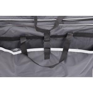 Чехол с двумя отделениями и двумя дополнительными боковыми карманами, предназначенный для транспортировки прямоугольного в сечении садка. Он выполнен из абсолютно непромокаемой ткани с ПВХ-покрытием, закрывается на молнию. Благодаря этому он не пропускает не только воду, но и запах, тем самым, решая все проблемы, которые могут возникнуть при транспортировке мокрого садка с рыбалки. Чехол оборудован ручками для переноски.