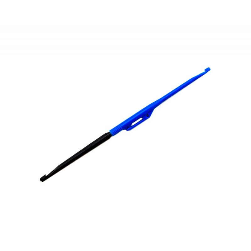 Простой и практичный экстрактор из пластика. Имеет на двух концах разные по величине рабочие части. Тем самым инструмент подходит для излечения крючков в двух диапазонах номеров. Эта модель также оснащена иглой для распутывания узлов.