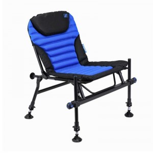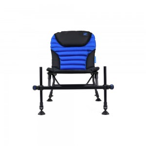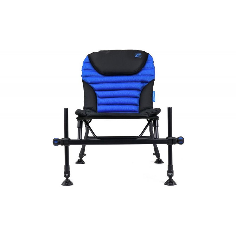 Очень легкое и очень удобное фидерное кресло с четырьмя телескопическими ножками с широкими пятками, предотвращающими проваливание в мягкий грунт. Передние ножки имеют диаметр 25 мм и на них могут быть установлены различные навесы. Это кресло имеет очень удобное и мягкое сиденье с фиксированным углом наклона спинки, а также специально усиленную переднюю часть, на которой расположены ножки. Передние ножки также имеют прорезиненные зажимы со специально разработанным внутренним механизмом, который надежно фиксирует ножки и не допускает их скольжения.