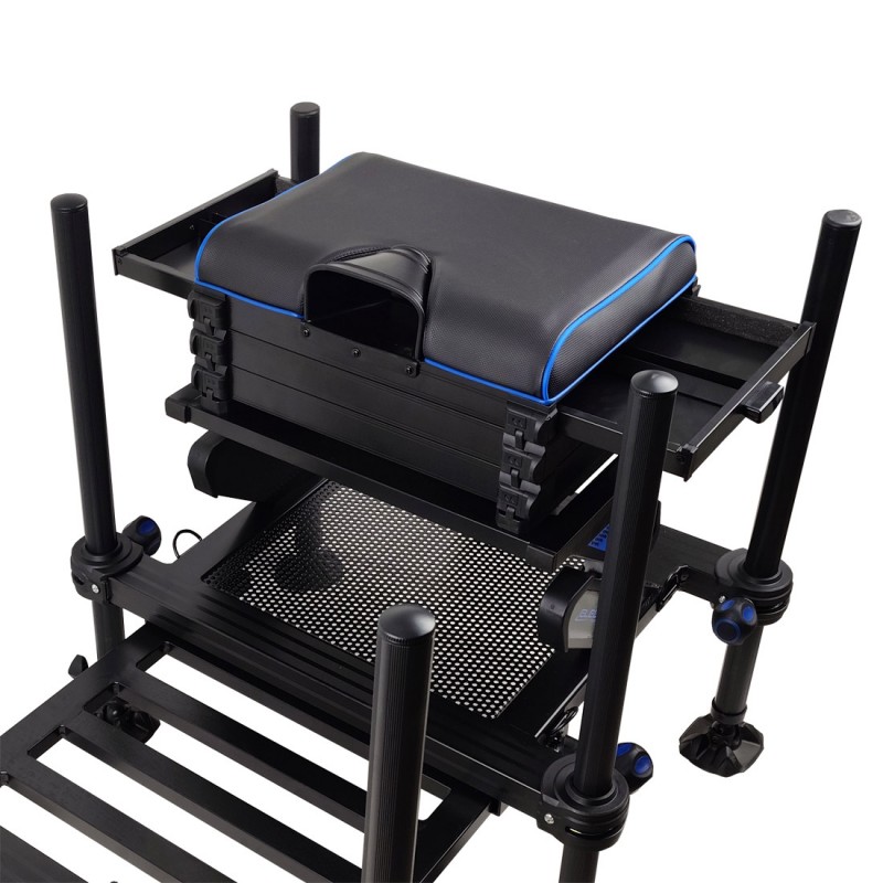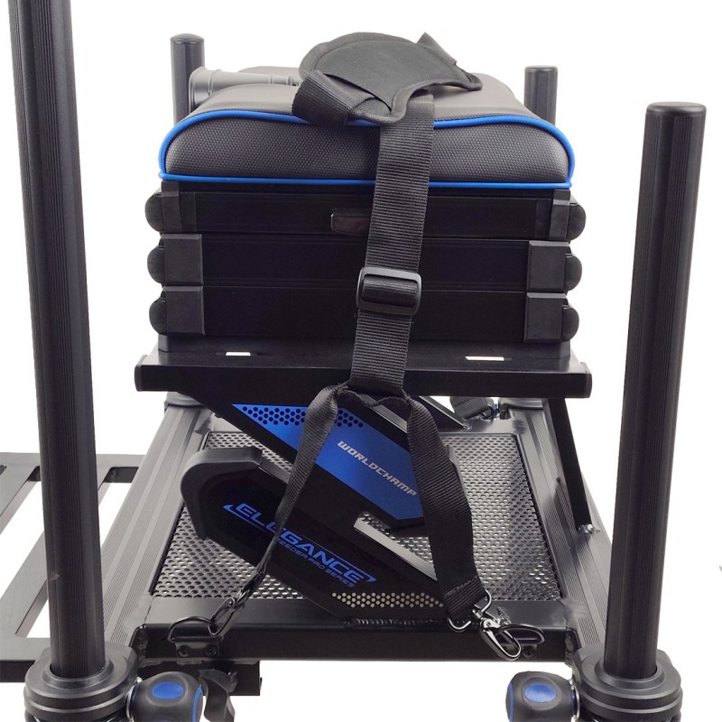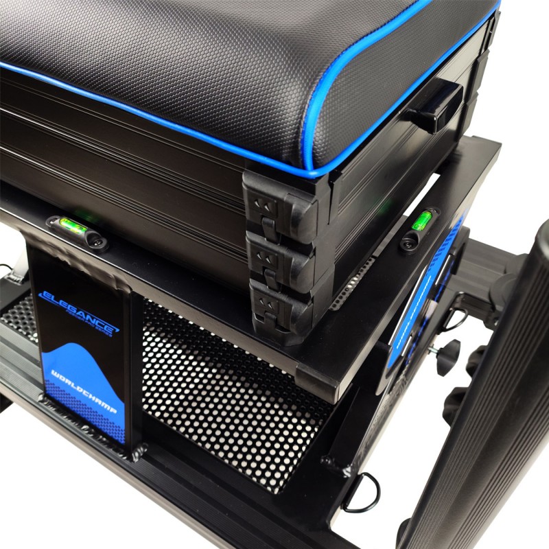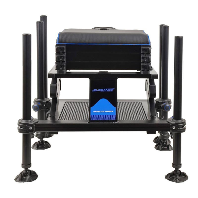 Новая, высококлассная, спортивная платформа Elegance, невероятно устойчивая и легкая, с удобным сиденьем, шестью противоскользящими ножками диаметром 36 мм и выдвижной педаной для ног. Она позволит добиться наилучших результатов в спортивной ловле на фидер! Передние и средние телескопические ножки позволяют легко складывать, раскладывать, регулировать платформу и размещать на любой поверхности, а на торцах ножек есть резьба для монтажа подставок под удилища и другого оборудования. Платформа Elegance Worldchamp имеет под сиденьем три модуля для снаряжения и аксессуаров. У первого модуля два боковых выдвижных ящика, а два других полностью открываются путем поднятия сиденья. Эта конкурентоспособная, высокого уровня платформа для фидерной рыбалки достойна Чемпионов мира в этой дисциплине!