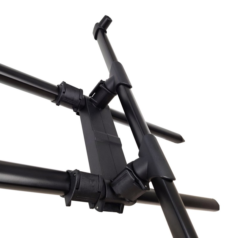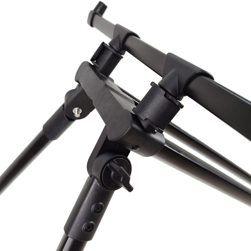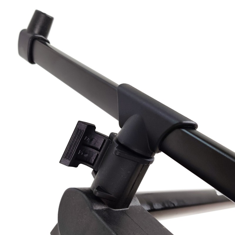 Передние ножки выдвигаются от 100 до 177 см, а их угол наклона регулируется. Это делает River Pod Deluxe идеальным для неровных берегов. Он также подходит для ловли карпа и морской рыбалки с серфовыми удилищами.