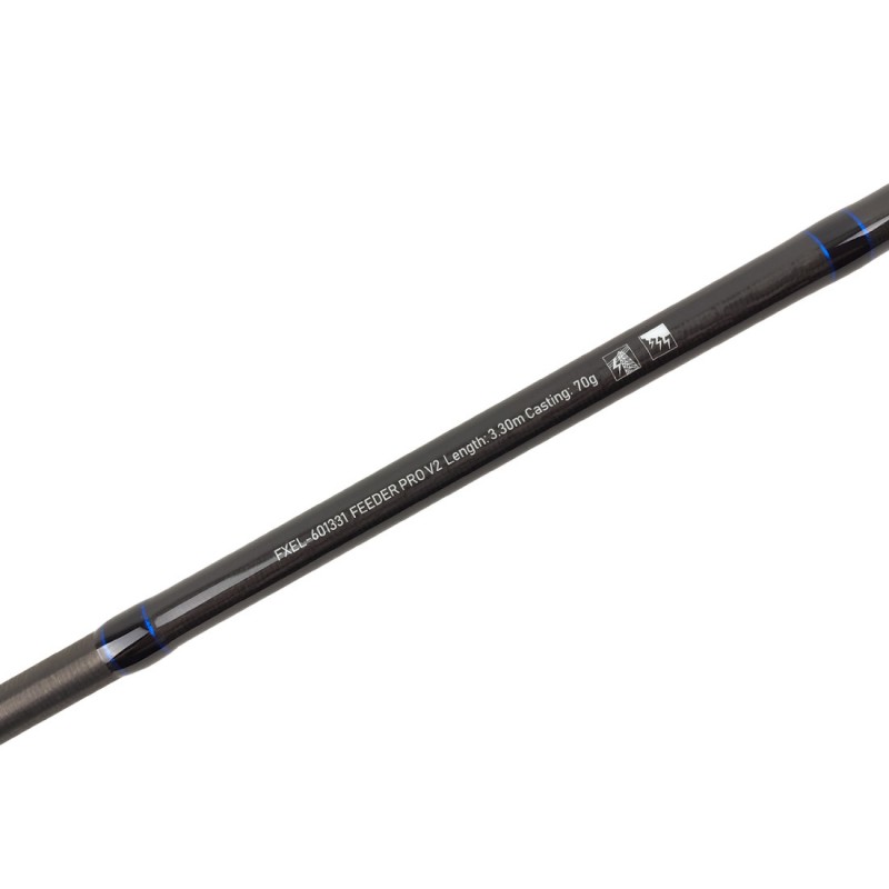Elegance Feeder Pro V2 3,30 м. 70 гр. – старшая модель в росте 3,30 м. В отличии от младшей модели бланк стал заметно быстрее. Строй удилища – ярковыраженый прогрессивный. Благодаря увеличеной мощности с данным удилищем уже можно смело переходить на дистанции до 45 метров. Чрезвычайно легкий, но прочный бланк обеспечивает оптимальную гибкость на вываживании и быстро реагирует на каждый рывок рыбы. Если вам нужна удочка для соревнований - строгая, лёгкая и точная, с идеальным бланком, позволяющим ловить рыбу на тонкие крючки и поводки, то это правильный выбор для вас. Рекомендуемые кормушки для этой модели – от 20 до 50 грамм. Отличным выбором для этого удилища станет катушка V1 3500.
