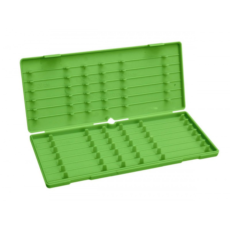 Самая большая из трёх поводочниц изготовлена из качественного и прочного пластика с надежным замком. На внутренних поверхностях, с обеих сторон много штырьков для крепления петель и крючков. Нанесены отметки длины, чтобы помочь вам при изготовлении поводков требуемой длины с высокой точностью.