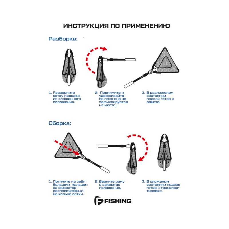 Универсальный складной, компактный подсак. Отлично подойдет для ловли рыбы с лодки или, если нужно не далеко достать и с берега. Он состоит из легкой, но прочной алюминиевой ручки и прочной сетки из нейлона, которая может выдерживать вес до 10 кг. Благодаря своей компактности он занимает минимум места и может быть легко уложен в рюкзак или багажник автомобиля. Длина в собранном 80 см. Транспортировочная длина, 42 см. Глубина сетки 36 см