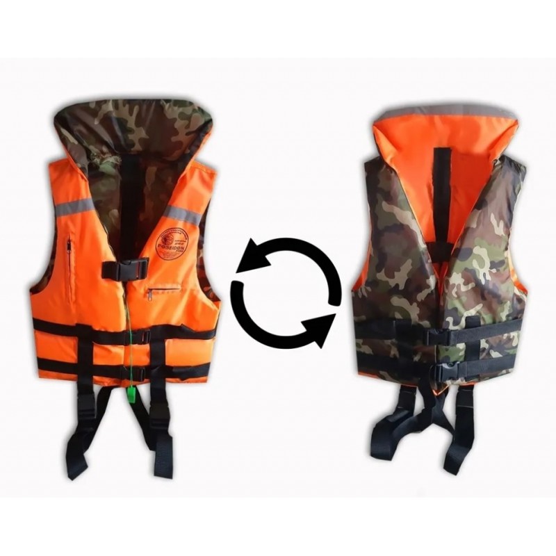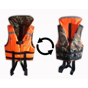Производится из современных синтетических материалов с влагозащитным покрытием. В качестве утеплителя используется вспененный полиэтилен. Представлен в комбинированном световом варианте: оранжевый и «камуфляж». Жилет с распашной конструкцией на застёжках-фастексах. Предусмотрены регулировочные ремни на груди, талии и плечах. Также имеется паховый ремень с возможностью регулировки и фиксации длины. На уровне груди пришита светоотражающая лента и нагрудный карман на молнии. В комплекте идёт свисток. Жилет оснащён высоким подголовником, который надёжно удерживает голову человека на поверхности воды и обладает достаточной гибкостью для компактного хранения при транспортировке.