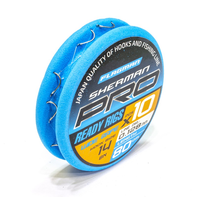 Sherman Pro Wide Gape Ready Rigs — серия готовых поводков, специально подготовленных для лова рыбы семейства карповых на коммерческих водоемах. Такая полностью готовая к использованию оснастка — удобное и практичное решение для поплавочной и фидерной ловли. Тем более что нужный диаметр лески легко подобрать, а поводок может быть укорочен до необходимой длины. Крючки на поводках этой серии изготовлены из высокопрочной стали с антикоррозийным покрытием. Поводки закреплены на мягкой шпуле из EVA материала. Количество поводков — 10 шт. Длина поводков — 80 см. Вместо того, чтобы тратить время за вязанием поводков гораздо проще и быстрее воспользоваться готовыми поводками и сразу же приступить к ловле.
