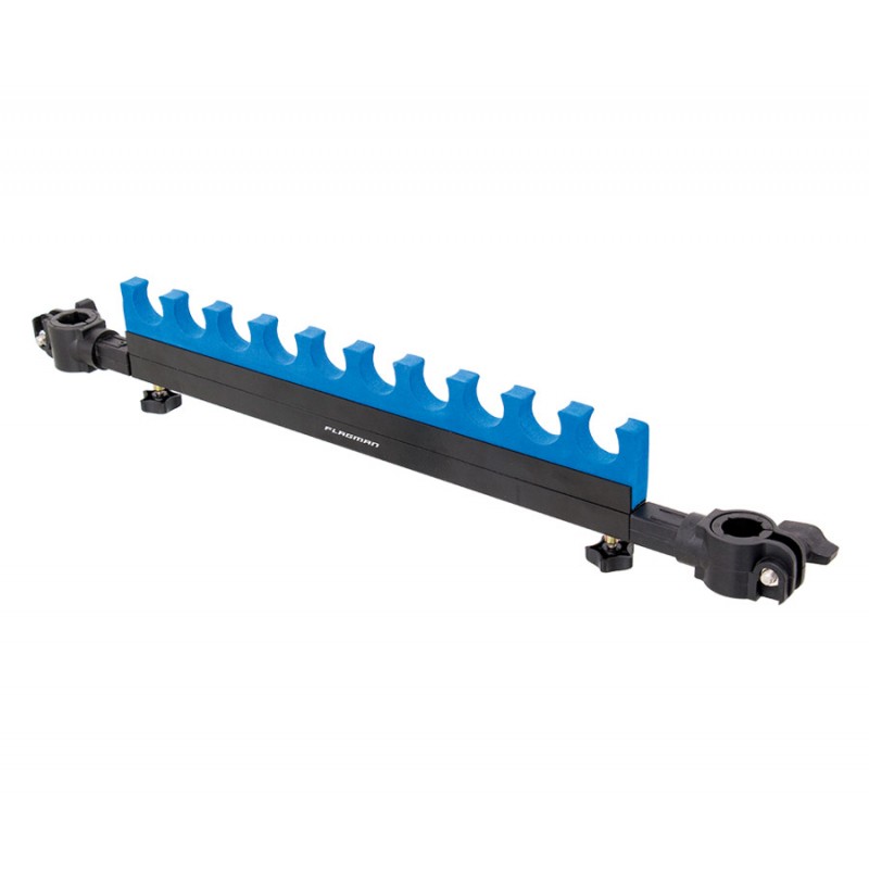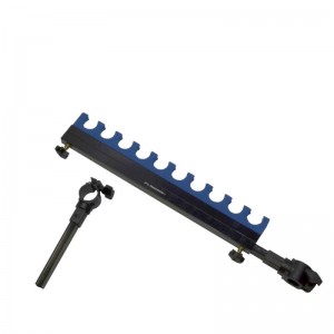 Универсальная гребенка на 10 секций со вставкой из мягкого пористого материала EVA, предохраняющей бланки удилищ от повреждений. Раздвижная конструкция (телескопическая) и быстросъемное крепление адаптивного типа позволяет устанавливать гребенку на различные по ширине платформы с диаметром ног 25, 30 и 36 мм.