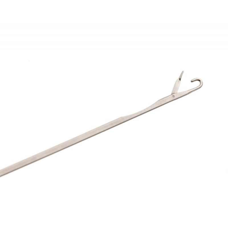 Мощная игла с самозакрывающимся замком для монтажа ПВА-стиков и стрингеров. Длина рабочей поверхности иглы 120 мм. Анатомическая рукоять выполнена из пластика с повышенным коэффициентом трения. На комеле рукоятки имеется крючок для затягивания узлов.