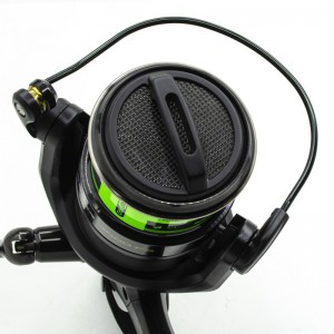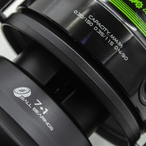 Катушка, сочетающая все параметры, необходимые для сверхдальнего заброса, с системой Free Spool, дающей возможность карпу после поклевки беспрепятственно сматывать леску. Удлиненная низкопрофильная шпуля большого диаметра имеет большую площадь поверхности. Благодаря этому при сверхдальних забросах диаметр намотки уменьшается крайне незначительно, а это значит, что леска не испытывает повышенного трения о выступающий буртик шпули, как это происходит при использовании обычных катушек. Данная модель предназначена для фидерной ловли, поэтому оснащена низкопрофильной шпулей, предназначенной для использования более тонких лесок, чем в классическом карпфишинге. Идеально ровную укладку лески обеспечивает бесконечный винт. Под шпулей находится специальное кольцо на четырех опорах, цилиндрические выступы которого входят в пазы, расположенные на внутренней поверхности ротора.Графитовый корпусFree Spool SystemАлюминиевая шпуля Long CastАлюминиевая ручкаРолик лесоукладывателя Anti-TwistМоментальный антиреверс7+1 подшипникаБесконечный винтРедукция: 4,6:1