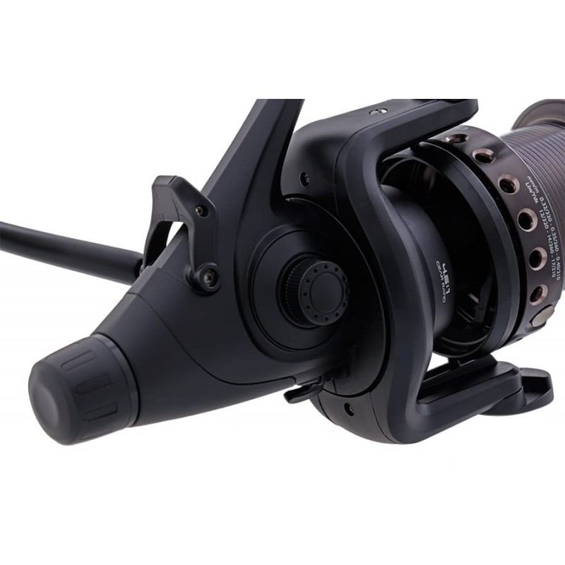Катушка, сочетающая все параметры, необходимые для сверхдальнего заброса, с системой Free Spool, дающей возможность карпу после поклевки беспрепятственно сматывать леску. Повышению дальности заброса способствует крупная шпуля с конической поверхностью, а также идеальная укладка лески с помощью бесконечного винта. Под шпулей расположено специальное кольцо на четырех опорах, цилиндрические выступы которого входят в пазы, расположенные на внутренней поверхности ротора. Благодаря этому леска не может попасть под шпулю и намотаться на ось. Корпус и ротор изготовлены из прочного пластика, ротор имеет превосходную динамическую балансировку. Катушка предназначена для ловли карпа на дальних дистанциях. Прекрасно подойдет для оснащения мощных удилищ и ловли крупных экземпляров.- Передний фрикцион.- Система Free Spool.- Алюминиевая шпуля.- Алюминиевая ручка.- 5+1 подшипников.- Бесконечный винт.- Редукция: 4,6:1.