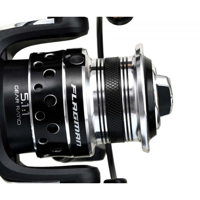 Flagman Force Rank Feeder – фидерные катушки, в которых надежность и высокие тяговые характеристики сочетаются с доступностью для широкого круга рыболовов. Корпус и ротор изготавливаются из высокопрочного пластика, мощная главная пара и шарикоподшипники, установленные в самых нагруженных точках, обеспечивают значительный ресурс. Кулисный механизм системы S-Curve Oscillation гарантирует качественную укладку лески, а устойчивый к истиранию ролик лесоукладывателя системы Anti-Twist предотвращает ее перекручивание. Емкость облегченной алюминиевой шпули Flagman Force Rank Feeder оптимальна для работы с тонкими лесками и шнурами. Шпуля оснащена круглой металлической клипсой, которая делает фиксацию дистанции при фидерной ловле надежной и безопасной для лески или шнура. Конический буртик шпули значительно уменьшает трение и повышает дальность заброса. Поверхность шпули «опоясана» специальной полосой с мелкой насечкой, которая препятствует проворачиванию намотанной лески или шнура под большими нагрузками. Фрикцион обладает точной плавной регулировкой и отличается стабильной работой. Металлическая ручка имеет обрезиненную рукоять, которая обеспечивает надежный и уверенный хват при работе с катушкой.