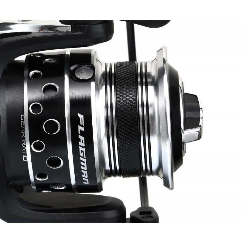 Flagman Force Rank Feeder – фидерные катушки, в которых надежность и высокие тяговые характеристики сочетаются с доступностью для широкого круга рыболовов. Корпус и ротор изготавливаются из высокопрочного пластика, мощная главная пара и шарикоподшипники, установленные в самых нагруженных точках, обеспечивают значительный ресурс. Кулисный механизм системы S-Curve Oscillation гарантирует качественную укладку лески, а устойчивый к истиранию ролик лесоукладывателя системы Anti-Twist предотвращает ее перекручивание. Емкость облегченной алюминиевой шпули Flagman Force Rank Feeder оптимальна для работы с тонкими лесками и шнурами. Шпуля оснащена круглой металлической клипсой, которая делает фиксацию дистанции при фидерной ловле надежной и безопасной для лески или шнура. Конический буртик шпули значительно уменьшает трение и повышает дальность заброса. Поверхность шпули «опоясана» специальной полосой с мелкой насечкой, которая препятствует проворачиванию намотанной лески или шнура под большими нагрузками. Фрикцион обладает точной плавной регулировкой и отличается стабильной работой. Металлическая ручка имеет обрезиненную рукоять, которая обеспечивает надежный и уверенный хват при работе с катушкой.