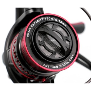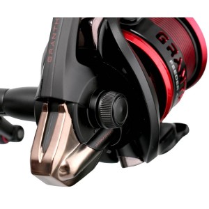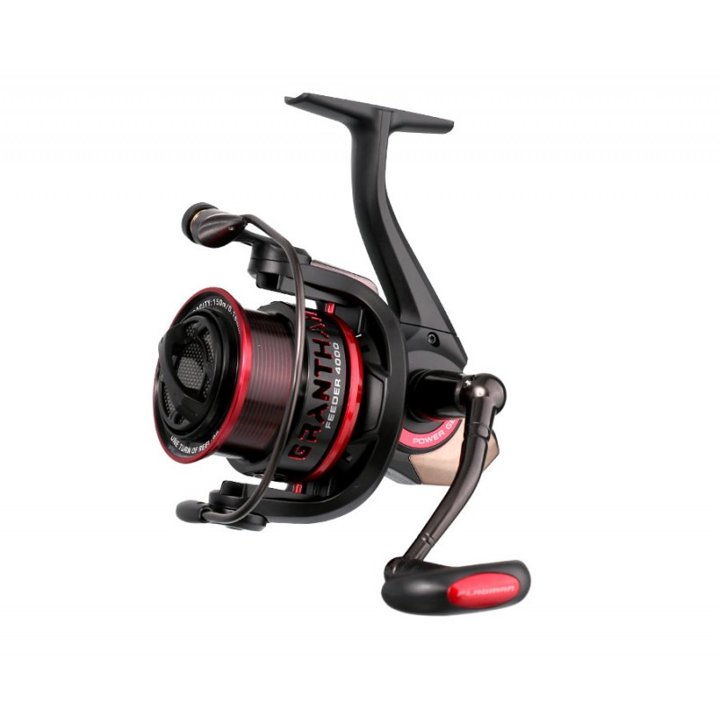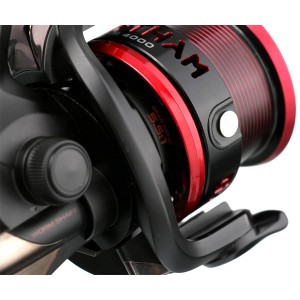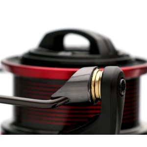Высококлассные фидерные катушки, разработанные для ловли на больших дистанциях. Низкопрофильная алюминиевая шпуля такой катушки имеет увеличенную площадь поверхности и конический передний буртик, что в сумме значительно снижает трение при вылете, а значит – увеличивает дальность. Идеально ровную укладку лески на шпулю обеспечивает «бесконечный винт». Для облегчения конструкции юбка шпули выполнена укороченной, под шпулей находится специальное кольцо, выступы которого входят в пазы, расположенные на внутренней поверхности ротора. Это не дает леске попадать под шпулю и наматываться на ось. Две металлические клипсы расширяют возможности фиксации дистанции ловли. Для удобства использования одна из них имеет черное покрытие, вторая – хромированная. Корпус и ротор, изготовлены из твердого пластика, благодаря чему катушки достаточно легкие, как для своих габаритов. Мощный механизм собран на 10 нержавеющих шарикоподшипниках, что гарантирует долговечность и плавность хода. Передний фрикцион отличается возможностью исключительно точной настройки тормозного усилия. Ролик лесоуклатывателя, покрытый сверхтвердым напылением, имеет форму, препятствующую перекручиванию лески. Каждая катушка поставляется в плотном чехле на молнии, который предохраняет ее от внешних повреждений. В комплекте идет запасная алюминиевая шпуля, а также дополнительная «двойная» ручка.