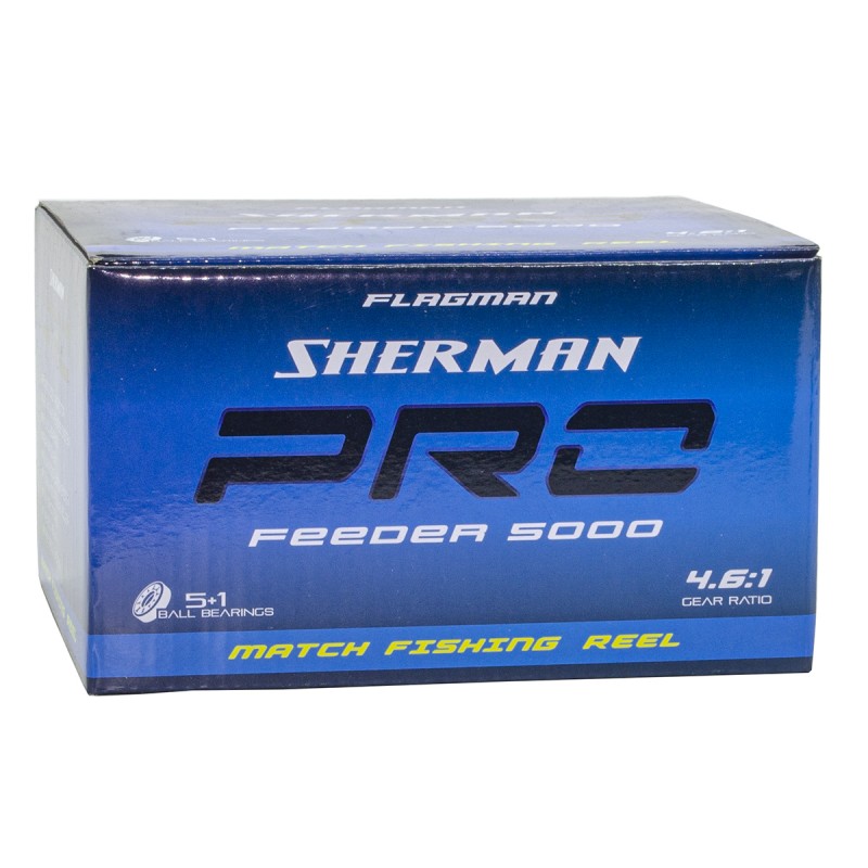 Sherman Pro — модернизированная серия катушек с системой Free Spool, созданная для фидерной ловли. Катушки предназначены, прежде всего, для эксплуатации на коммерческих водоемах. Благодаря Free Spool можно на время отвлечься от наблюдений за снастью, не боясь, что рывок крупной рыбы сокрушит поводок или станет причиной падения снасти в воду. Шпули имеют увеличенный размер, но при этом меньшую емкость, чем у карповых катушек, что делает их оптимальными для эксплуатации с тонкими лесками. Механизм обладает не только плавным ходом, но и высокой мощностью, в результате позволяя справиться с солидным трофеем.Система Free SpoolРолик лесоукладывателя Anti-TwistМоментальный антиреверсПластиковый корпусАлюминиевая шпуля