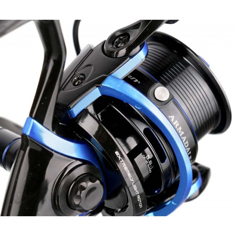 Flagman Armadale Pro Match & Picker – ультрасовременная скоростная катушка для матчевой и пикерной ловли. Для уменьшения веса ее корпус и ротор изготовлены из высокопрочного пластика. Ротор максимально облегчен и прекрасно сбалансирован, что исключает любые паразитные биения и вибрации. Облегченная алюминиевая шпуля оснащена двумя круглыми металлическими клипсами. Шпуля вмещает 150 метров лески диаметром 0,23 мм и имеет конический буртик, который значительно уменьшает трение и повышает дальность заброса. Усовершенствованный кулисный механизм «Армадейл Про» укладывает леску исключительно качественно, а стойкий к протиранию и коррозии ролик лесоукладывателя Anti-Twist предотвращает ее перекручивание. Фрикцион обладает высокоточной плавной регулировкой и отличается стабильной работой. Фрезерованная алюминиевая ручка ввинчивается напрямую в главную пару, что предотвращает любые люфты. Рукоятка обрезинена, ее плоская форма обеспечивает надежный и уверенный хват. Особую плавность хода обеспечивают установленные в механизме 7+1 высококачественных подшипников из нержавеющей стали. Редукция – 5,8:1.Характеристики:- передний фрикцион;- 7+1 шарикоподшипников из нержавеющей стали;- алюминиевая рама и карбоновые накладки;- экстремально облегченный ротор;- сверхплавный ход;- ось из нержавеющей стали;- моментальный антиреверс.