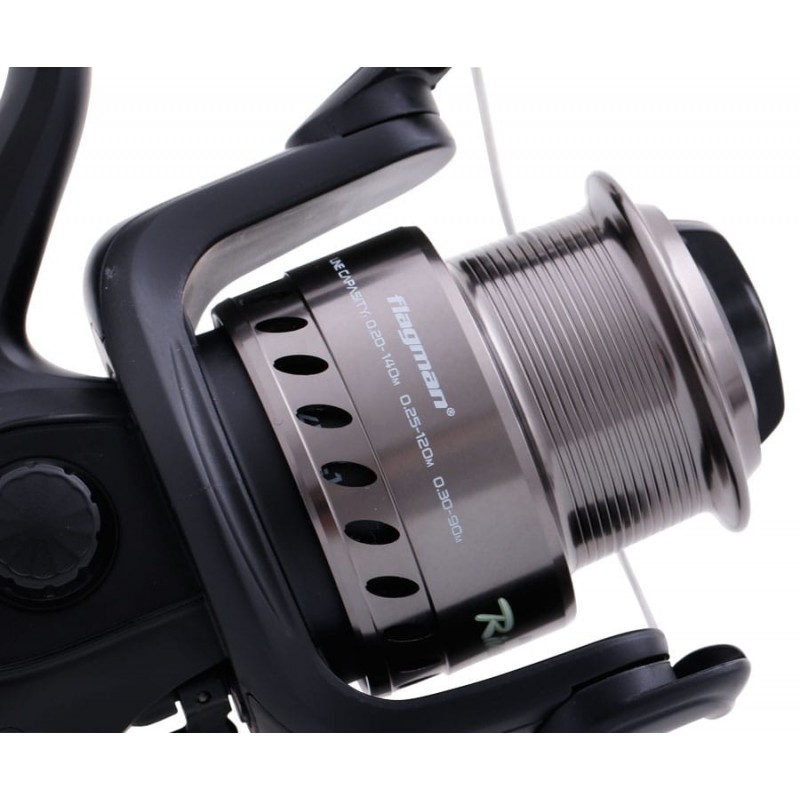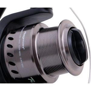Доступная, но в то же время надежная фидерная катушка, обладающая достойными тяговыми характеристиками. Переднефрикционная схема делает ее легкой и компактной. Плавная регулировка фрикциона дает возможность выставить тормозное усилие с высокой точностью. Низкопрофильная алюминиевая шпуля имеет геометрию Long Cast (удлиненную форму и коническую поверхность намотки), что увеличивает дальность заброса. Форма ролика лесоукладывателя препятствует перекручиванию лески. Превосходная динамическая балансировка делает комфортной даже очень быструю подмотку. Ротор и корпус выполнены из прочного пластика.Передний фрикцион.Алюминиевая шпуля.Алюминиевая ручка.2+1 подшипника.Редукция: 4,6:1.