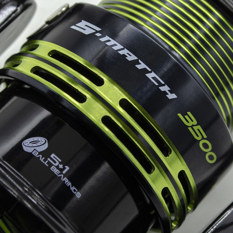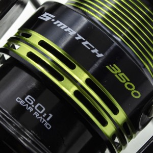 Переднефрикционная катушка, предназначенная для установки на матчевые удилища. Она маленькая и легкая, но благодаря редукции 6:1 она подматывает за один оборот 95 см лески, что дает возможность экономить время при ловле матчевой снастью в высоком темпе. Низкопрофильная шпуля адаптирована для использования тонких монофильных лесок. Круглая металлическая клипса не повреждает леску при фиксации дистанции ловли. Усовершенствованнай кулисный механизм обеспечивает качественную укладку лески на шпулю. Увеличенный ролик лесоуклыдывателя покрыт сверхтвердым напылением и имеет форму, препятствующую перекручиванию лески. Плавно регулируемый передний фрикцион дает возможность точно выставить тормозное усилие. Корпус и ротор катушки выполнены из прочного пластика, шпуля и ручка — из алюминиевого сплава.