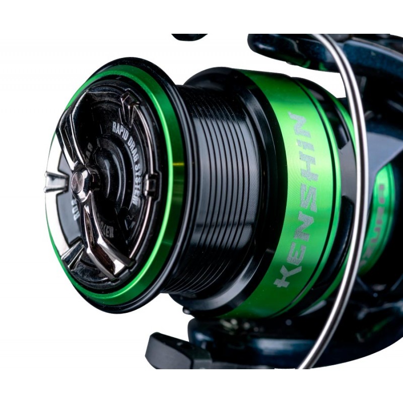 Данная позиция доступна по предоплате с отгрузкой после 30.07.2020 г.Серия Kenshin предоставляет беспрецедентную возможность для широкого круга рыболовов оснастить свои легкие графитовые удилища соответствующими катушками, не выходя за рамки разумного бюджета. Компактный корпус и ротор Azura Kenshin изготовлены из пластика GF+ с повышенным содержанием углеродного волокна, благодаря чему отличаются прочностью и малым весом. Катушка оборудована точеной алюминиевой шпулей и «быстрым» фрикционом Rapid Drag, полностью затягивающимся менее чем за 1 оборот ручки. Кулисный механизм усовершенствованной конструкции обеспечивает качественную укладку лески. Screw-in handle – ручка, непосредственно ввинчивающаяся в ведущую шестерню, – полностью исключает люфт в узле крепления и отличается высокой надежностью. Катушка поставляется в неопреновом чехле, снабженном кармашком для рукояти.Характеристики Kenshin от Azura:- Корпус и ротор из пластика GF+- 9 подшипников- Редукция: 5.3:1- Алюминиевая шпуля- Фрикцион Rapid Drag - Моментальный антиреверс- Кулисный механизм укладки лески-