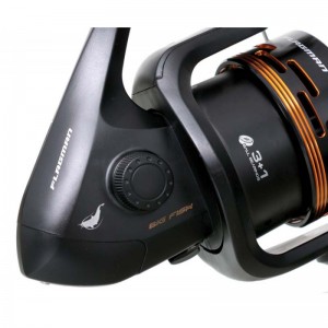 Flagman Big Fish 8000 – большая и очень мощная спиннинговая катушка, предназначенная для ловли крупной и сильной рыбы. Увеличенная алюминиевая шпуля обладает большой лесоемкостью, а силовой механизм на трех высококачественных шарикоподшипниках способен справиться с натиском любых подводных гигантов. Исключительно качественная укладка лески достигается использованием усовершенствованного кулисного механизма. Точеная алюминиевая шпуля и ролик лесоукладывателя со сверхтвердым напылением позволяют без ограничений работать как с лесками, так и со шнурами. Толстая ось из качественной стали способна выдерживать значительные усилия, позволяя в случае необходимости затянуть фрикцион и форсировать вываживание рыбы. Фрикционный тормоз с мощными дисками отличается стабильной работой и не подведет в самый ответственный момент.Характеристики:- Пластиковые корпус и ротор- Мощный фрикцион- 3+1 высококачественных шарикоподшипника- Редукция 4,5:1- Точеная алюминиевая шпуля- Моментальный антиреверс- Ролик лесоукладывателя с системой Anti-Twist- Фрезерованная алюминиевая ручка с ухватистой обрезиненной рукоятью- Лесоемкость: 280 м лески диаметром 0,4 мм