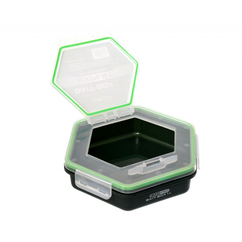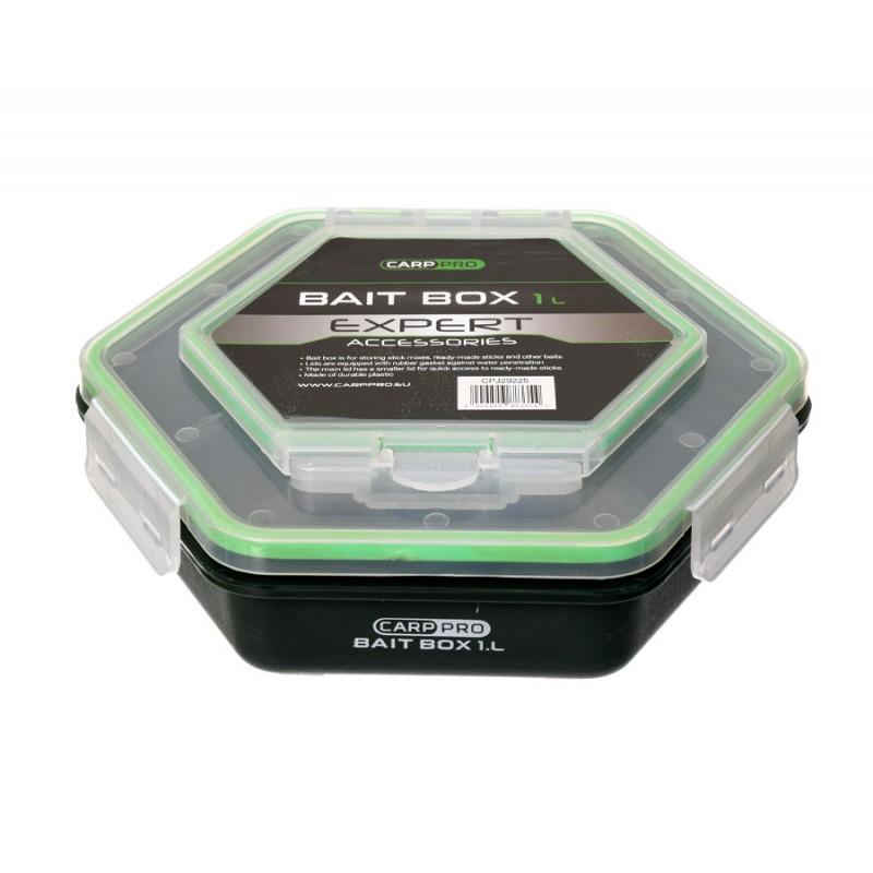 Коробки Carp Pro Bait Box – удобные и функциональные боксы, предназначенные для герметичного хранения стик- и метод-миксов, готовых стиков, а также приманок для ловли карпа. Carp Pro Bait Box изготовлены из прочного пластика. Основная крышка каждой модели Carp Pro Bait Box оборудована дополнительной крышкой меньшего размера – для быстрого доступа к содержимому. Крышки оснащены резиновыми прокладками, обеспечивающими герметичность изделия и предотвращающими проникновение воды, пыли и посторонних запахов. В серии доступны модели ёмкостью 1, 1,5 и 2 литра.