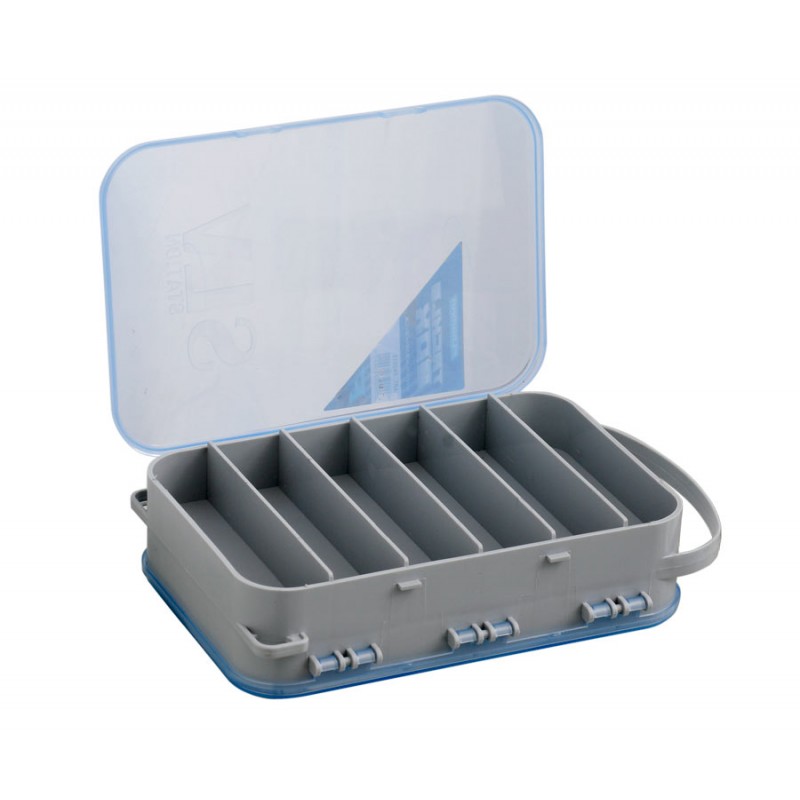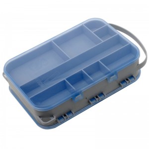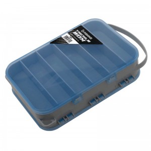 Двусторонняя рыболовная коробка из полипропилена для спиннинговых приманок. Коробка очень вместительна, имеет шесть широких отсеков с одной стороны и девять отсеков разного размера с другой. Крышки прозрачные, крепятся с помощью шарнирного соединения, закрываются на защелки. Коробка оснащена удобной пластиковой ручкой и ушками для крепления на шнур.