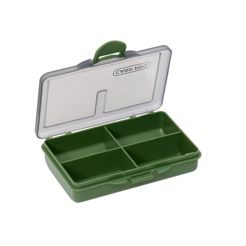 Небольшая карповая коробка Carp Pro для аксессуаров с четырьмя отсеками рассчитана на любителей карпфишинга. Эта компактная и удобная коробка для рыболовной «мелочевки» изготовлена из ударопрочного пластика, стойкого к ультрафиолету и к перепадам температур. Верхняя крышка выполнена из полупрозрачного пластика и позволяет, не открывая коробку, визуально определить место укладки нужного аксессуара или оценить их количество.