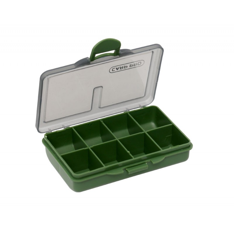 Небольшая карповая коробка Carp Pro для аксессуаров на 8 отсеков. Хоть коробка и рассчитана на любителей карпфишинга, однако практическое применение ей найдется для решения самого широкого спектра задач. Эта компактная и удобная коробка для рыболовной «мелочевки» изготовлена из ударопрочного пластика, стойкого к ультрафиолету и к перепадам температур. Верхняя крышка выполнена из полупрозрачного пластика и позволяет, не открывая коробку, визуально определить место укладки нужного аксессуара или оценить их количество.