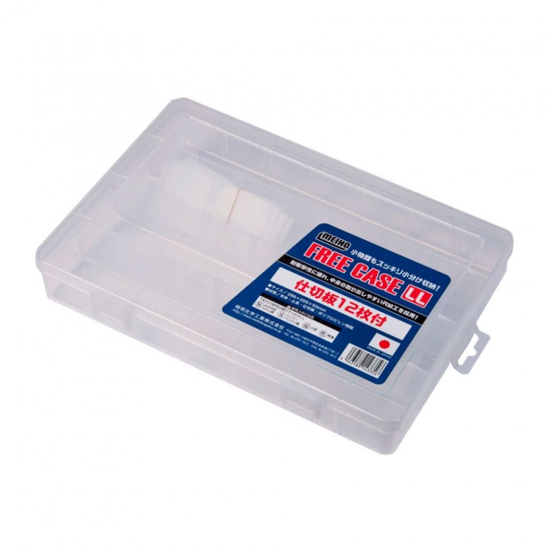 Meiho Free Case LL — коробка большого размера для крупных и объемных приманок или элементов рыболовного снаряжения. Допускается разделение четырех продольных отделений на 12 мелких ячеек. Габаритные размеры 286х205х50 мм.