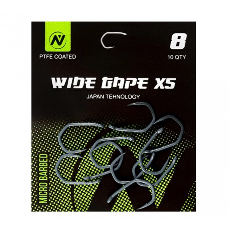 Карповый крючок Wide Gape X5 – разработан и изготовлен совместно с японскими инженерами. Выполнены из высокоуглеродистой стали, со специальным тефлоновым покрытием PTFE. Угловой дизайн, придает дополнительную прочность на разгибание и надежно удерживается при засечке. Крючок имеет широкий зев с загнутым ушком и острым, коническим жалом с микробородкой. Универсальная серия, применяется во многих видах оснасток, в том числе и Зиг Риг.
