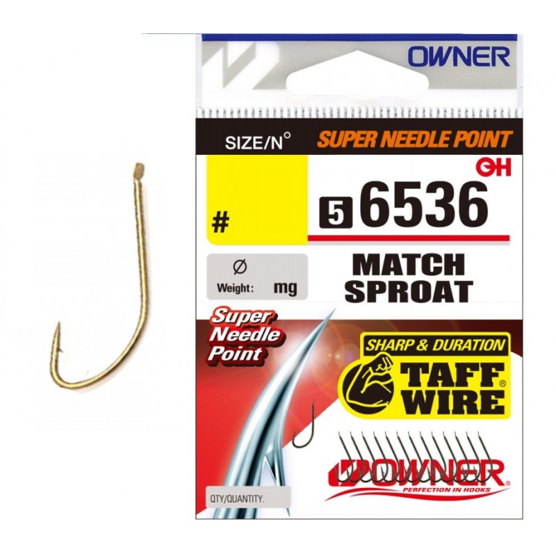 Owner Match Sproat 56536 – серия спортивных крючков для высокоскоростной ловли уклейки, плотвы, окуня и прочих спортивных трофеев. Удлиненное цевье помогает не только быстро снимать пойманную рыбу, но и быстро менять насадку. Крючки Owner 56536 имеют узкий полукруглый загиб, удлиненное цевье с удобной для привязывания лопаткой, защитное покрытие коричневого цвета. Owner Match Sproat с успехом используются в донных и поплавочных оснастках для ловли рыбы на животные насадки. Острейшее жало с заточкой Super Needle Point и нормальной величины бородка гарантируют эффективную подсечку и уверенное удержание клюнувшей рыбы.