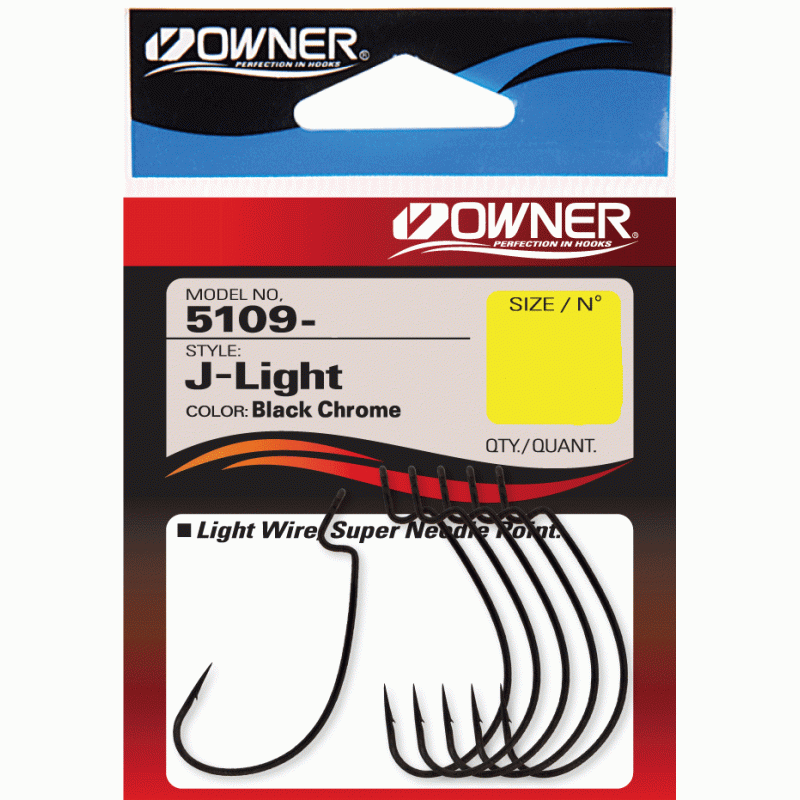 Owner Offset J-Light Worm Hook 5109 – серия офсетных крючков, характеризующаяся широкой формой, закругленным чуть скошенным загибом, кованым поддевом, достаточно коротким, отогнутым на 30 градусов цевьем с классической Z-образной ступенькой и защитным покрытием красного цвета. Серия Owner 5109 рекомендуется к использованию в джиговых, а также каролинской и техасской оснастках – для ловли на объемные приманки. Owner J-Light Worm Hook выполнены из достаточно тонкой проволоки, что позволяет использовать их с более нежными приманками. Острейшее жало с самой совершенной заточкой Cutting Point и уменьшенной величины бородка гарантируют не только эффективную подсечку и уверенное удержание подсеченной рыбы, но и минимальное нанесение повреждений последней.