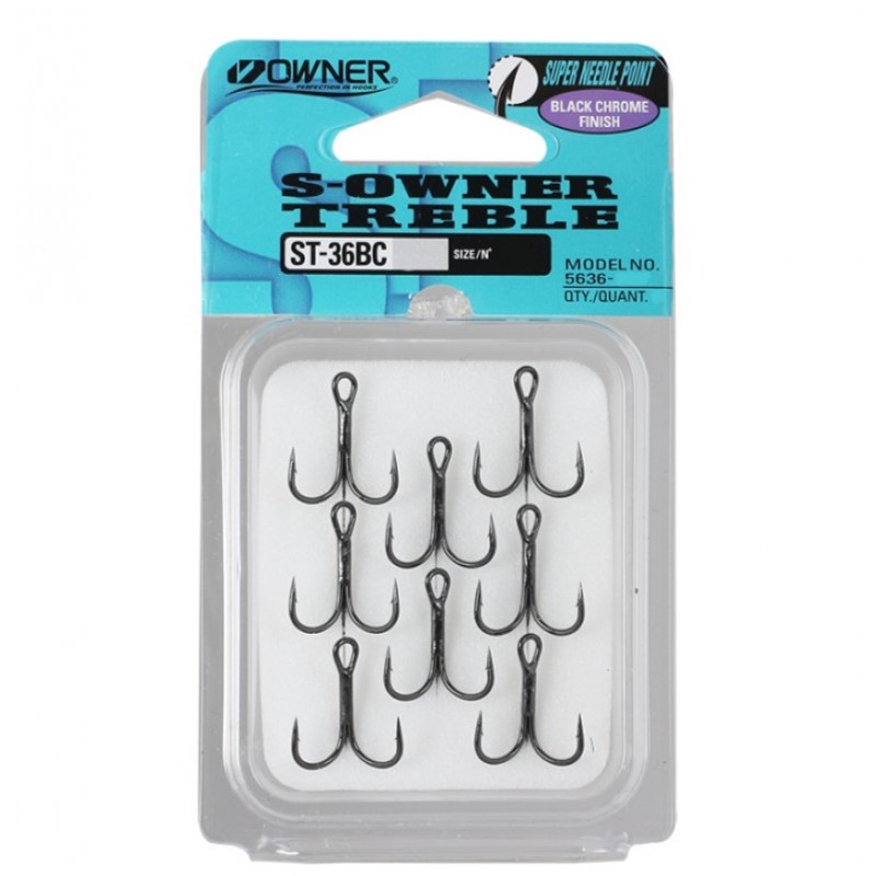 Тройники Owner ST-36BC отличаются круглым загибом и игольной заточкой жала. Покрытие Black Chrome дает возможность использовать Owner ST-36BC как в пресной, так и соленой воде. Данную серию часто применяют для оснащения исскуственных приманок.