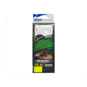 Крючки Owner Method Feeder Rig Spear FD-01, для карпфишинга и другой мирной рыбы, с готовым поводком, для облегчения монтажа при фидерной ловле на берегу водоемов и экономии времени. Эти крючки с поводком предназначены для монтажа по типу Feeder Method в Карпфишинге, с готовой фиксацией для удерживания наживки на волосе монтажа возле крючка. Что облегчает и экономит время при наживлении насадки на монтаж.Монтаж волоса Rig Spear FD-01 предназначен для фиксации донных бойлов и пеллетса более жесткой структуры и большим временем растворимости в воде. Так же такой фиксатор ускоряет процесс наживления насадки на волос. Так как данного типа бойлы и пеллетс имеют твердую структуру и требуют усилий при наживлении. Длина поводков составляет 10 см, а диаметр лески с разрывной нагрузкой подобран под размеры крючков в соответствии с предполагаемыми нагрузками и размерами рыбы и ловли под тип монтажа Feeder Method.