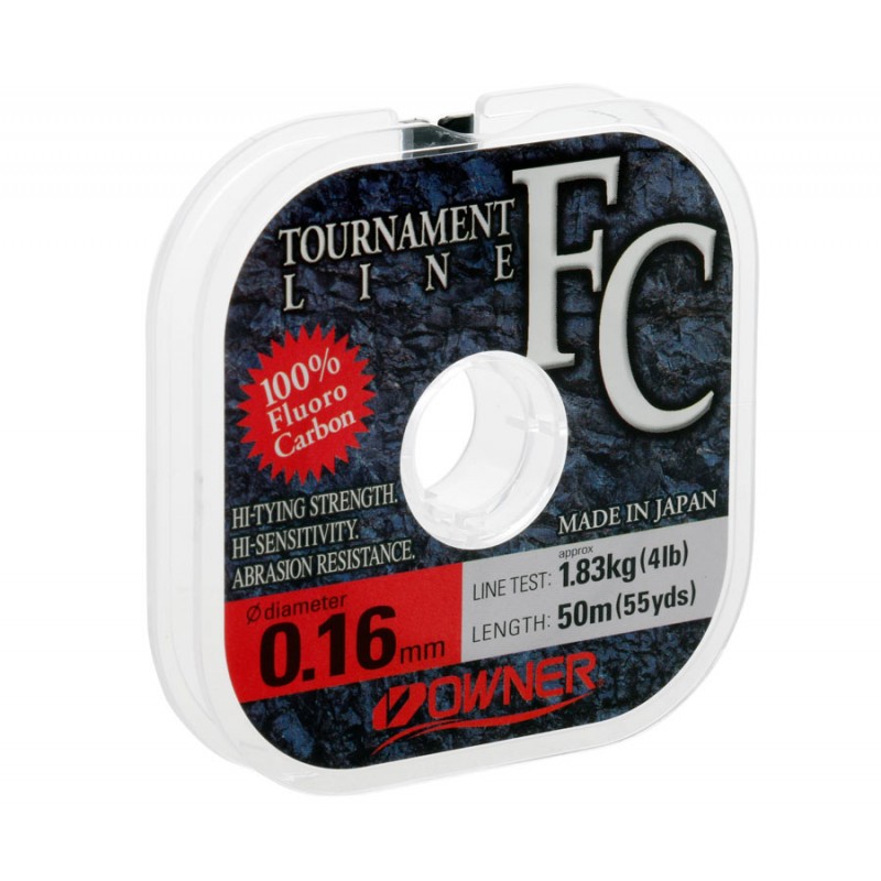 Owner Tournament Line FC — флюорокарбоновая леска спортивного класса. Основное отличие флюорокарбона от обычных монофиламентных лесок состоит в том, что при помещении в воду, за счет несколько иного угла преломления света, он становится практически невидимым со всеми вытекающими отсюда последствиями. Кроме того, флюорокарбон имеет несколько больший удельный вес, чем вода, что обеспечивает его тонущие свойства.