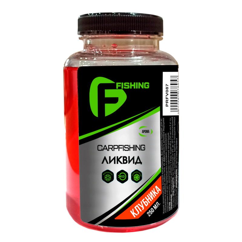 F-Fishing Carp Клубника – жидкая добавка в прикормочную смесь со сладким ароматом клубники.