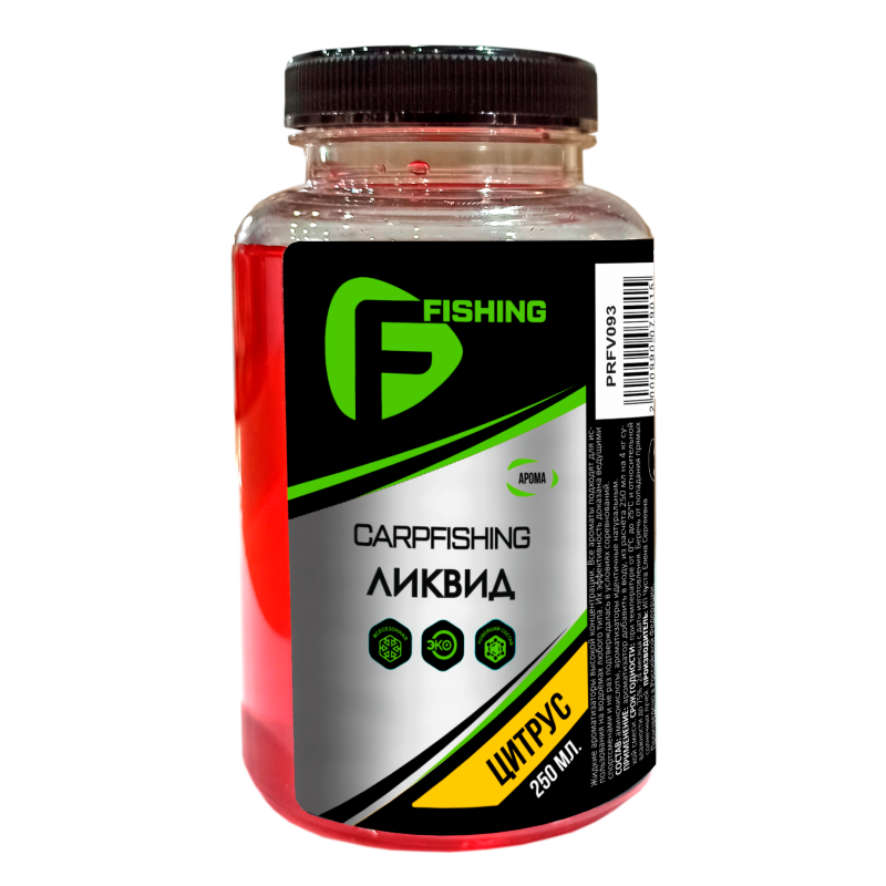 F-Fishing Carp Ликвид Цитрус – жидкая добавка в прикормочную смесь со специфическим ароматом цитрусовых.
