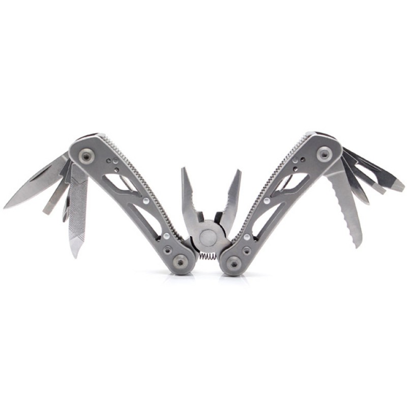 Данная модель имеет 11 инструментов, что позволяет говорить о ее высокой эффективности. Каждый из инструментов выполнен из нержавеющей стали, устойчивой к коррозии. В данной модели имеются специальные защелки, что позволяет надежно фиксировать инструменты в процессе работы. Чтобы рука плотно прилегала к мультитулу даже если она мокрая или жирная, на рукоятках сделаны насечки.