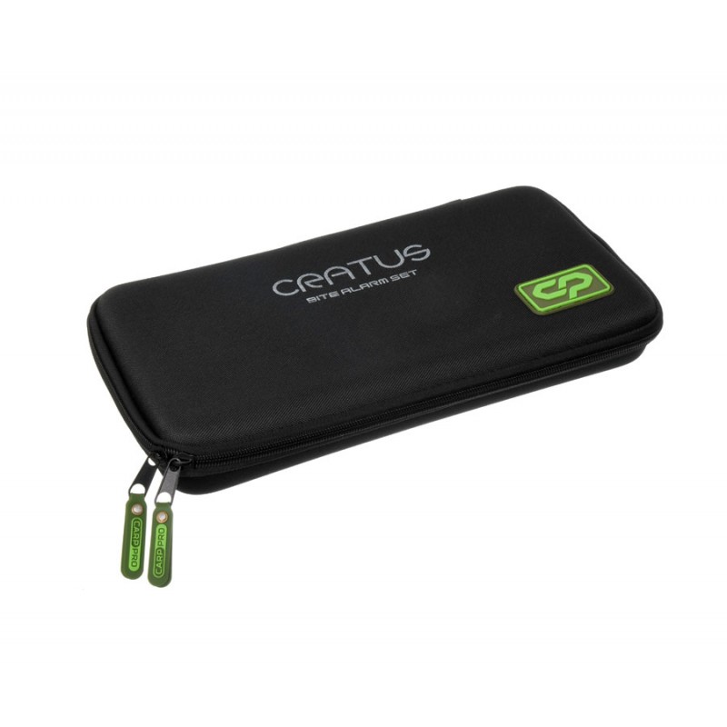 Carp Pro Cratus 4+1 (6910-004) – набор электронных сигнализаторов поклевки с ресивером, размещенный в удобном кейсе. В набор входит 4 сигнализатора с LED-индикаторами красного, синего, зеленого и желтого свечения плюс ресивер и ремешок для него.Сигнализаторы Carp Pro Cratus – это простые и надежные электронные помощники карпятника. Они достаточно компактны и хорошо защищены от проникновения влаги. Каждый сигнализатор оборудован съемными ограничителями Snag Ears, которые защищают удилище от падения при порывах ветра или мощных боковых поклевках. На передней панели сигнализатора расположен световой индикатор поклевки, состоящий из 6 светодиодов, и 3 кнопки для регулировки громкости звука, его тональности, а также чувствительности сигнализатора. Каждая из регулировок имеет 6 уровней, которые отражаются на индикаторе в процессе настройки. Кроме того, бегущей дорожкой индикатор демонстрирует направление поклевки: от берега или в берег. На корпусе сигнализатора предусмотрен разъем для подключения механического индикатора поклевки (свингера). Вдобавок, данная модель CP Cratus имеет функцию «Ночной режим».Звук на сигнализаторах можно отключить, оставив звуковое оповещение только на ресивере. При этом ресивер точно передает выставленную тональность звука от каждого из сигнализаторов, а уровень громкости можно выставить соответствующей кнопкой. На передней панели ресивера размещены световые индикаторы поклевки – по цвету соответствующие каждому из сигнализаторов. При поклевке индикатор ресивера дублирует ее направление с показаний сработавшего сигнализатора. Также имеется функция памяти: можно посмотреть на каком из сигнализаторов произошла последняя сработка. Ресивер осуществляет уверенный прием на расстоянии 100-150 м.Для питания ресивера и сигнализаторов используется один элемент ААА с напряжением 1,5 В. Полужесткий кейс на молнии выполнен из прочного синтетического материала. Он надежно защищает электронные устройства Carp Pro Cratus 4+1 от пыли и влаги.