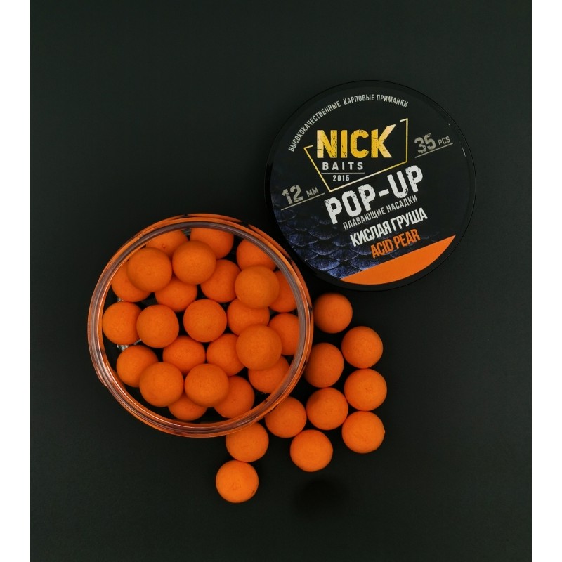 POP-UP NICK BAITS произведены из собственного микса с тщательным подбором цветовых решений для эффективного применения. Цвет и форма долго сохраняются в воде, что позволяет на протяжении нескольких часов держать снасть в точке ловли привлекательной для рыбы. Благодаря специально подобранным ингредиентам, бойлы длительное время сохраняют свою мягкость и свежесть. Насадки имеют устойчивый и яркий аромат со сложными сочетаниями вкусов и аттрактивных веществ, которые подобраны опытным путем на практике, при ловле карпов, амуров и других рыб. Помимо этого, приманки крайне удобны в использовании. Благодаря их плавучести можно приподнять монтаж над дном или поставить крючок на жало, тем самым сделать качественную презентацию приманки. Имеют отличный баланс при использовании с самыми популярными крючками. Структура оптимально плотная и эластичная. Приманки легко прокалываются и подрезаются. Поп-апы отлично зарекомендовали себя как в виде единичных насадок для ловли, так и для изготовлении комбинированных насадок. Прекрасно подходят для сочетания с кукурузой, тигровым орехом, пеллетсом и подрезанными тонущими бойлами. Приманки упакованы в удобные пластиковые баночки небольшого размера, что позволяет сэкономить место в вашей рыболовной сумке.