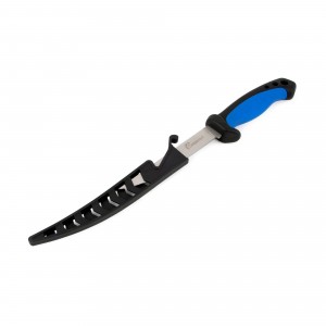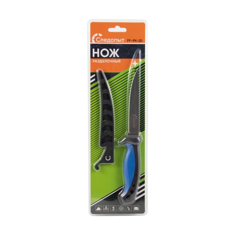 Нож разделочный «Следопыт – PF-PK-20» может быть использован как в полевых условиях, так и на кухне для разделки мяса и нарезания ровных тонких кусков мяса или рыбы. Глубокая подпальцевая выемка обеспечивает отличную фиксацию ручки при работе, длинный сужающийся острый и гибкий клинок позволяет быстро отделять филе от хребта и костей. В комплекте с ножом поставляется облегченный пластиковый чехол-ножны, повторяющий форму лезвия, с фиксатором на ручке. Предназначен для охотников и рыболовов, может быть использован и на домашней кухне.