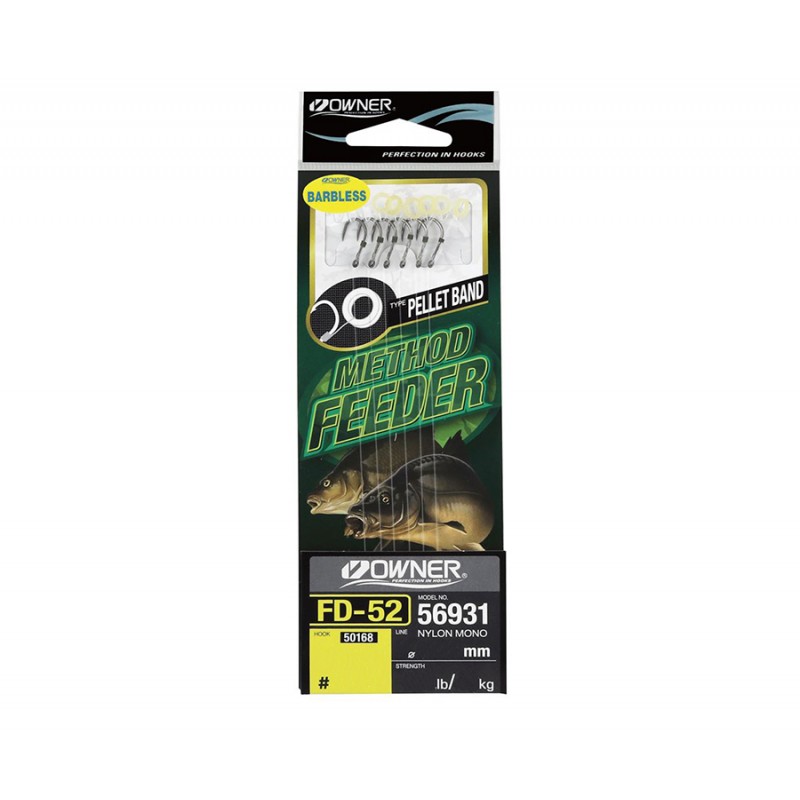 Owner Method Feeder Pellet Band Barbless FD-52 – серия готовых поводков для метод-фидерной ловли карпа и прочей рыбы. Волосяной монтаж изготовлен с применением высококачественной лески и надежных крючков. Кроме того на волосе предусмотрено специальное резиновое колечко для крепления пеллетса. В поводках Owner 56931-52 используются безбородые крючки с колечком, имеющие широкий загиб, загнутое в сторону цевья жало и слегка укороченное цевье. Покрытие темного цвета защищает крючок Owner Method Feeder Pellet Band Barbless от коррозии и маскирует его на фоне дна. Сверхострое жало, сохраняющее заточку даже в самых сложных условиях, и отсутствие бородки гарантируют не только эффективную подсечку клюнувшей рыбы, но и минимальное нанесение повреждений последней.