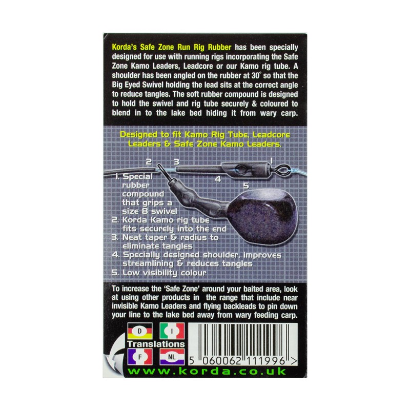 Korda Run Rig — резиновые наконечники в форме стакана, разработаны специально для скользящих оснасток. Утолщение на конце наконечника под углом 30 градусов значительно минимизирует спутывание оснастки.