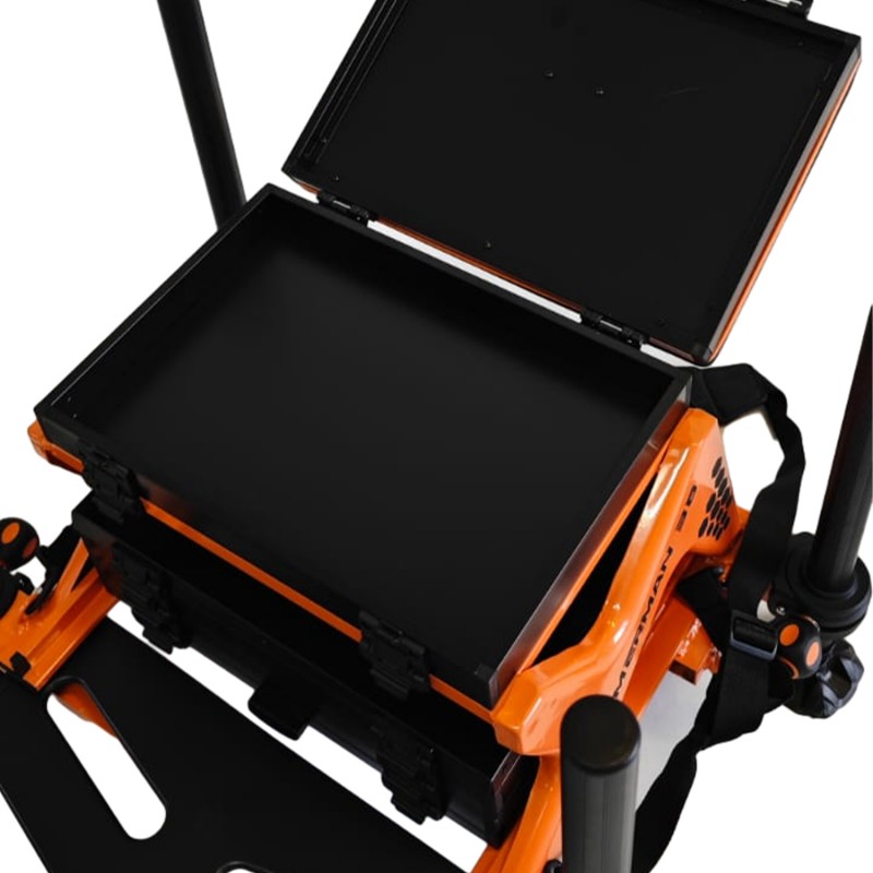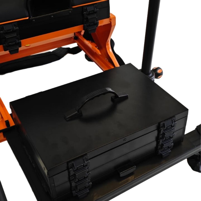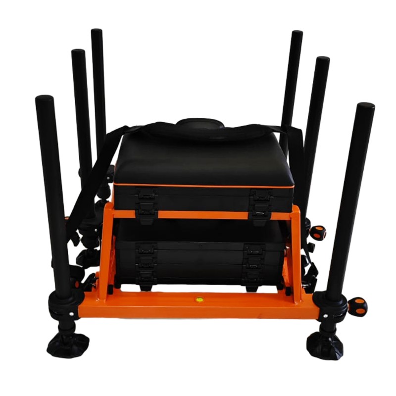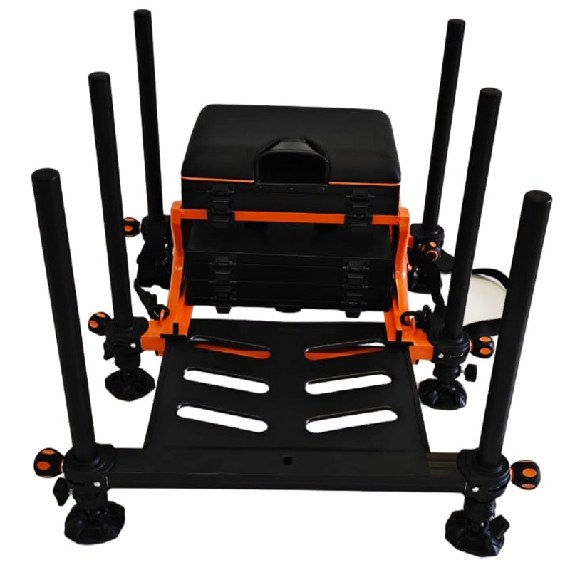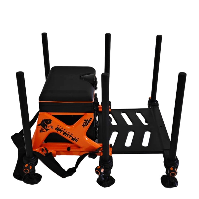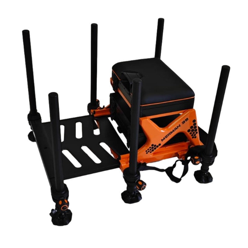 Платформа с популярным диаметром ноги 36 мм подойдет как для любительской, так и для спортивной рыбалки. Она оснащена мягким, съемным сидением-модулем, под которым вы удобно можете разместить рыболовные аксессуары и принадлежности. Педана, как и в предыдущих моделях платформ, выдвижная, что значительно экономит место при транспортировке платформы. В комплект входит ремень с четырьмя точками крепления. Дополнительные треи позволят сделать высоту от педаны до сидения еще выше, в трее имеется один выдвижной ящик. Четыре передние ноги платформы телескопические 65 см плюс 115 см (телескоп), две задние ноги 65 см (не телескоп). Широкая, подвижная пятка позволит размещать платформу Merman на неровной поверхности и делает ее еще более устойчивой. Платформа выполнена в фирменном черно-оранжевом цвете. Дисконт и скидки на данный товар не распространяются.