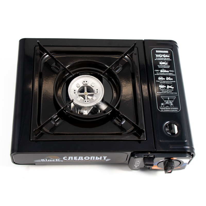 Плита настольная газовая «Следопыт Black» предназначена для приготовления пищи как в домашних условиях, так и открытом воздухе. Плита оборудована одной горелкой с кольцевым образованием пламени, имеет пьезоэлектрический розжиг и блок управления подачи газа. Для удобства транспортировки и хранения плита размещается в пластиковом кейсе. В качестве топлива используются газовые смеси в баллонах с нажимным клапаном и цанговым захватом, а также бытовой редукторный баллон через переходник. Подходит для установки на открытых верандах, террасах и беседках. Может использоваться во время туристических походов, кемпинга, охоты и рыбалки.