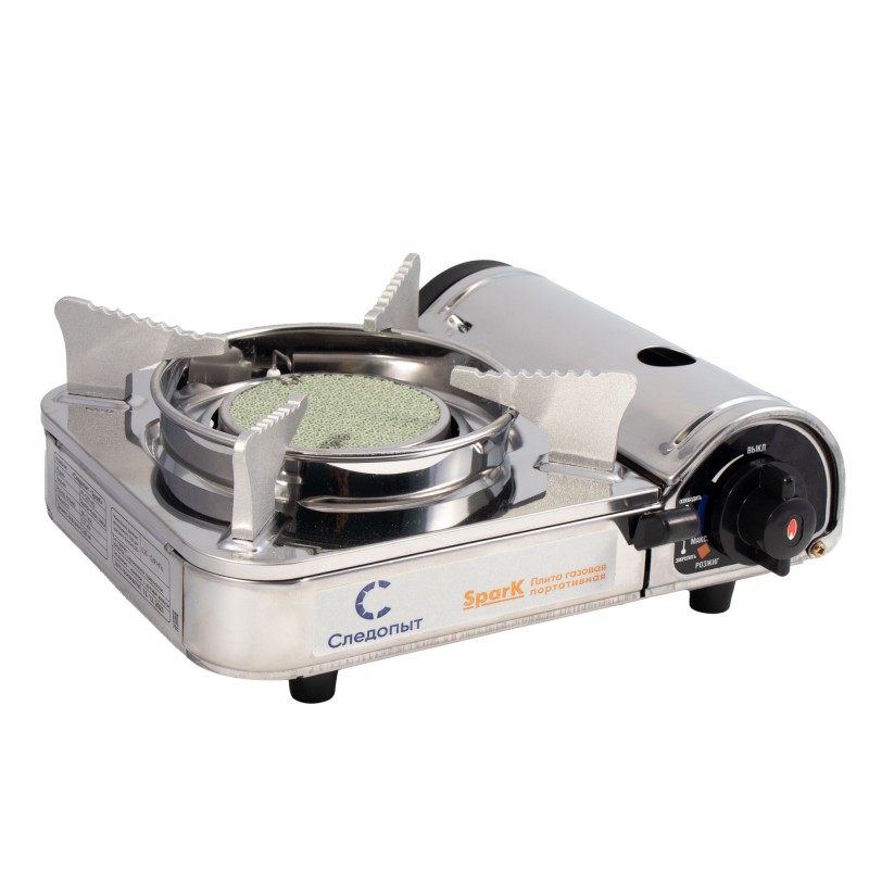 Плита настольная газовая «Следопыт Spark» предназначена для приготовления пищи как в домашних условиях, так и открытом воздухе. Плита оборудована одной горелкой с керамическим покрытием, имеет пьезоэлектрический розжиг и блок управления подачи газа. Для удобства транспортировки и хранения плита размещается в пластиковом кейсе. В качестве топлива используются газовые смеси в баллонах с нажимным клапаном и цанговым захватом. Подходит для установки на открытых верандах, террасах и беседках. Может использоваться во время туристических походов, кемпинга, охоты и рыбалки.